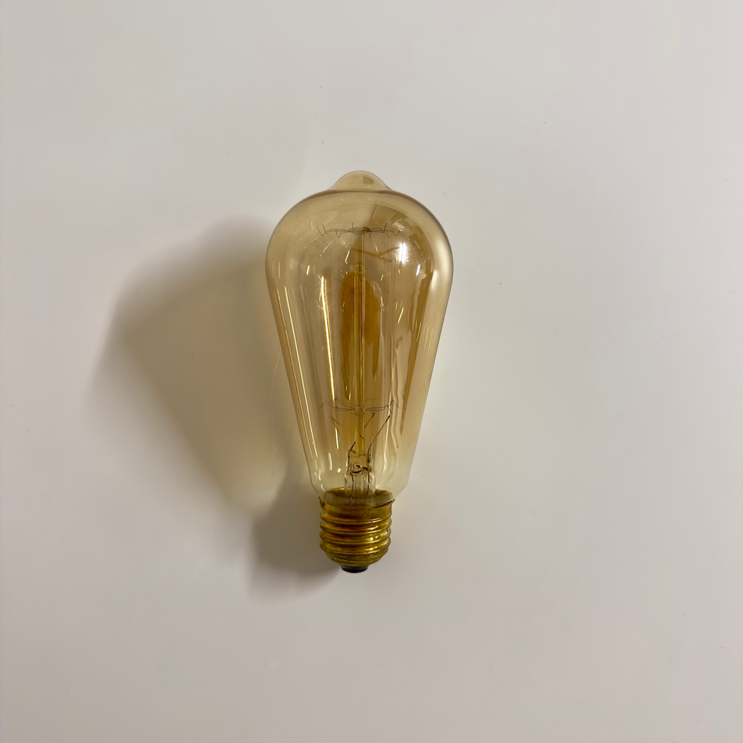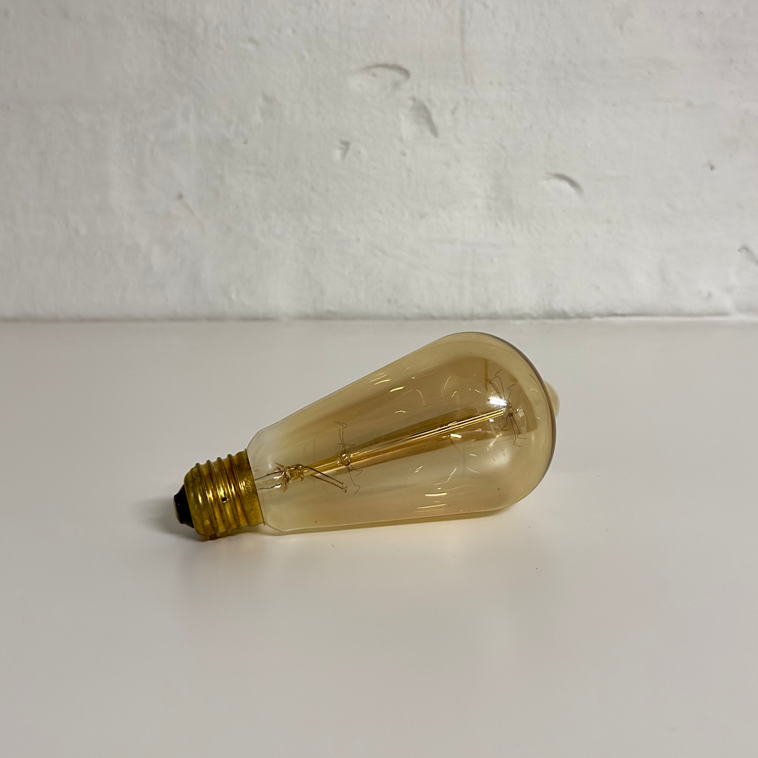 Edison glødepære med 40w. Passer i en E27 fatning. Pæren passer til alle vores produkter. Pæren har et varmt gyldent lys med en synlig glødetråd gennem glasset.