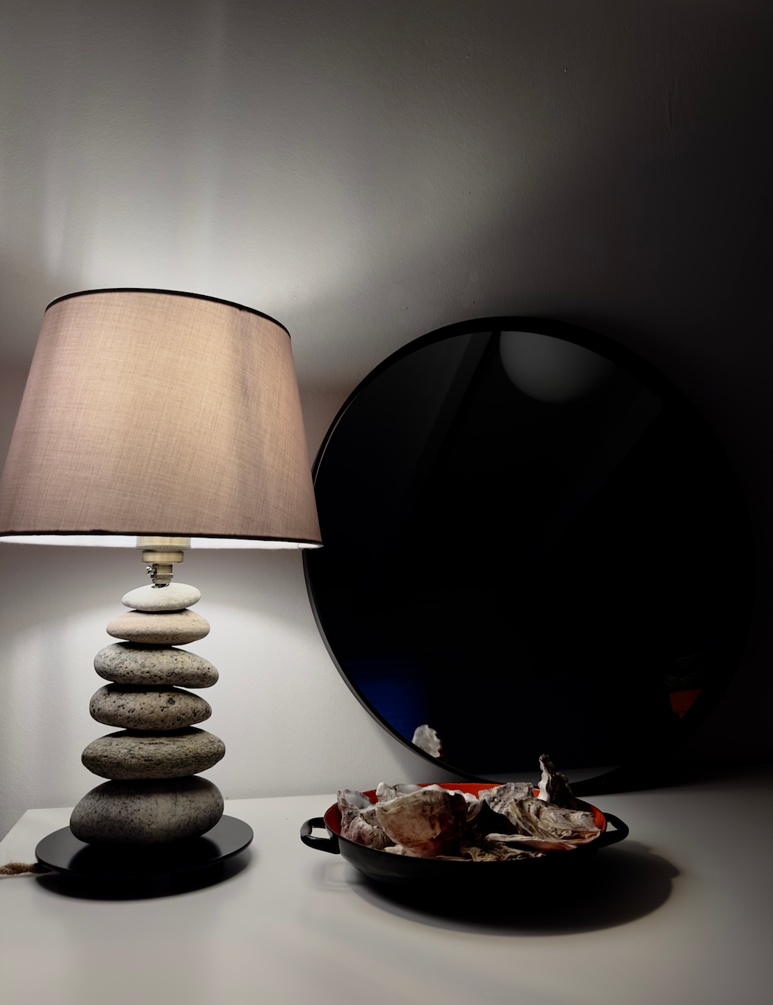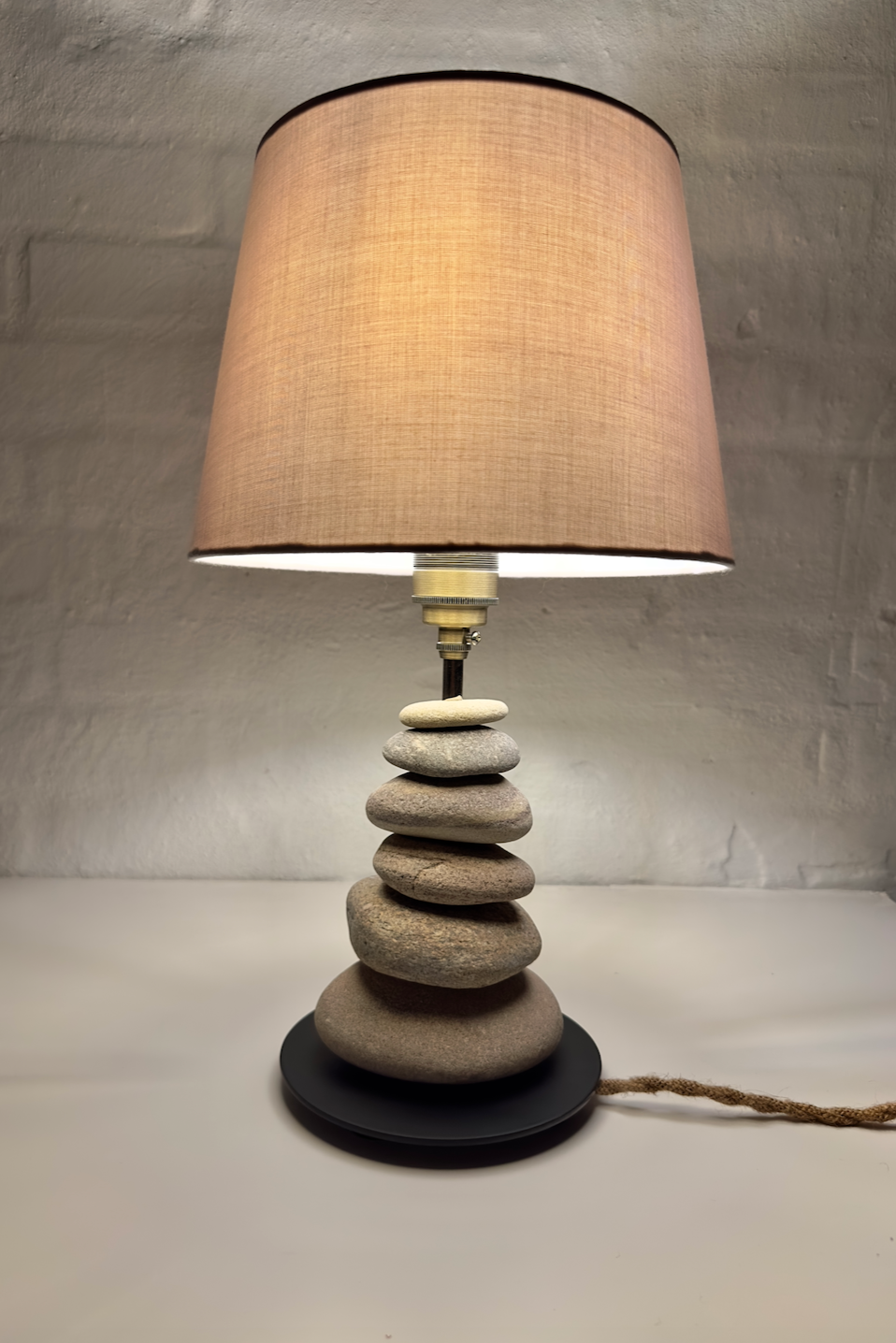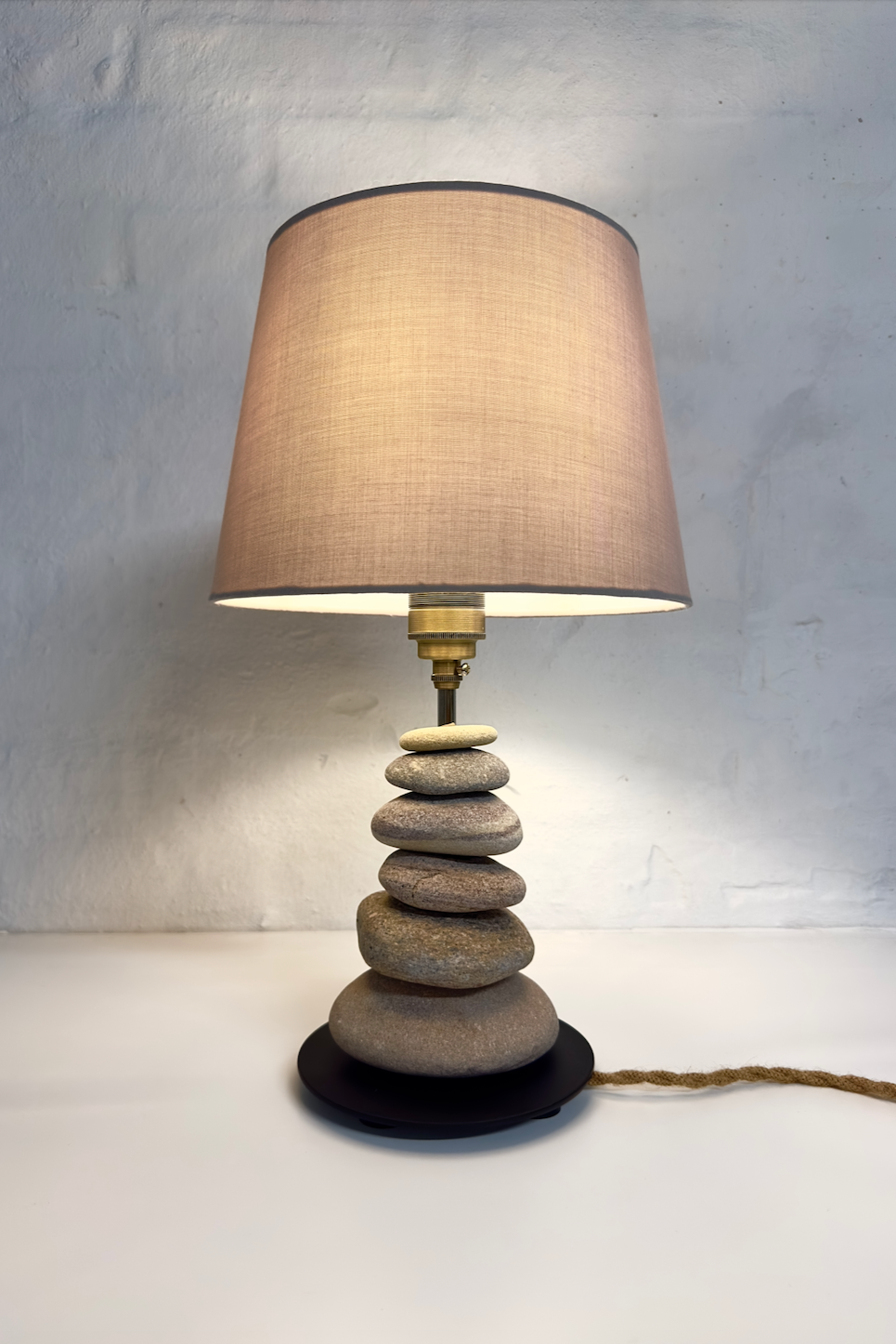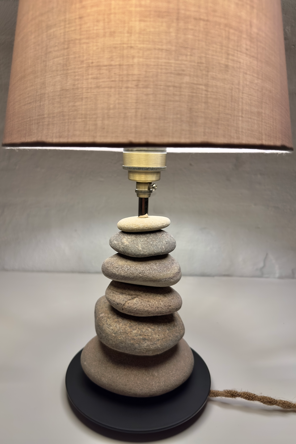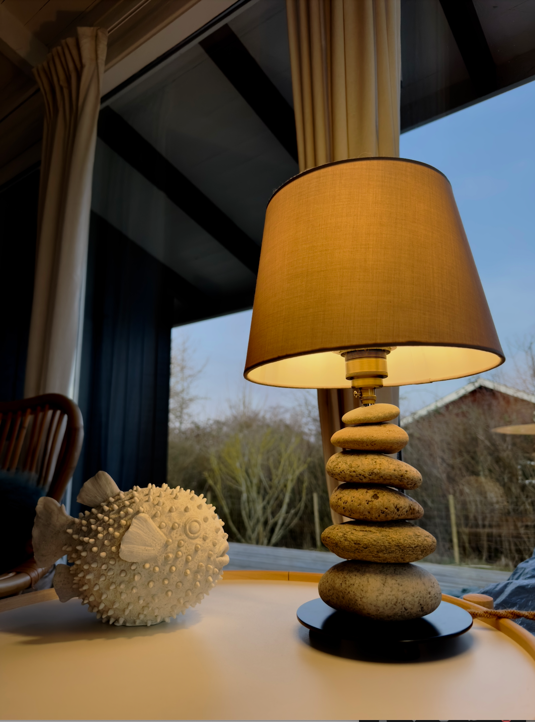 Forestil dig en lampe, hvis lysstråler danser over glatte sten, som om de fortæller historier om havets evige sang. Vores unikke StoneCairn lampe er en hyldest til naturens skønhed og styrke. Hver sten omhyggeligt udvalgt, bærer med sig sin egen unikke form, tekstur og farvespil, formet af tidens og naturens kræfter.