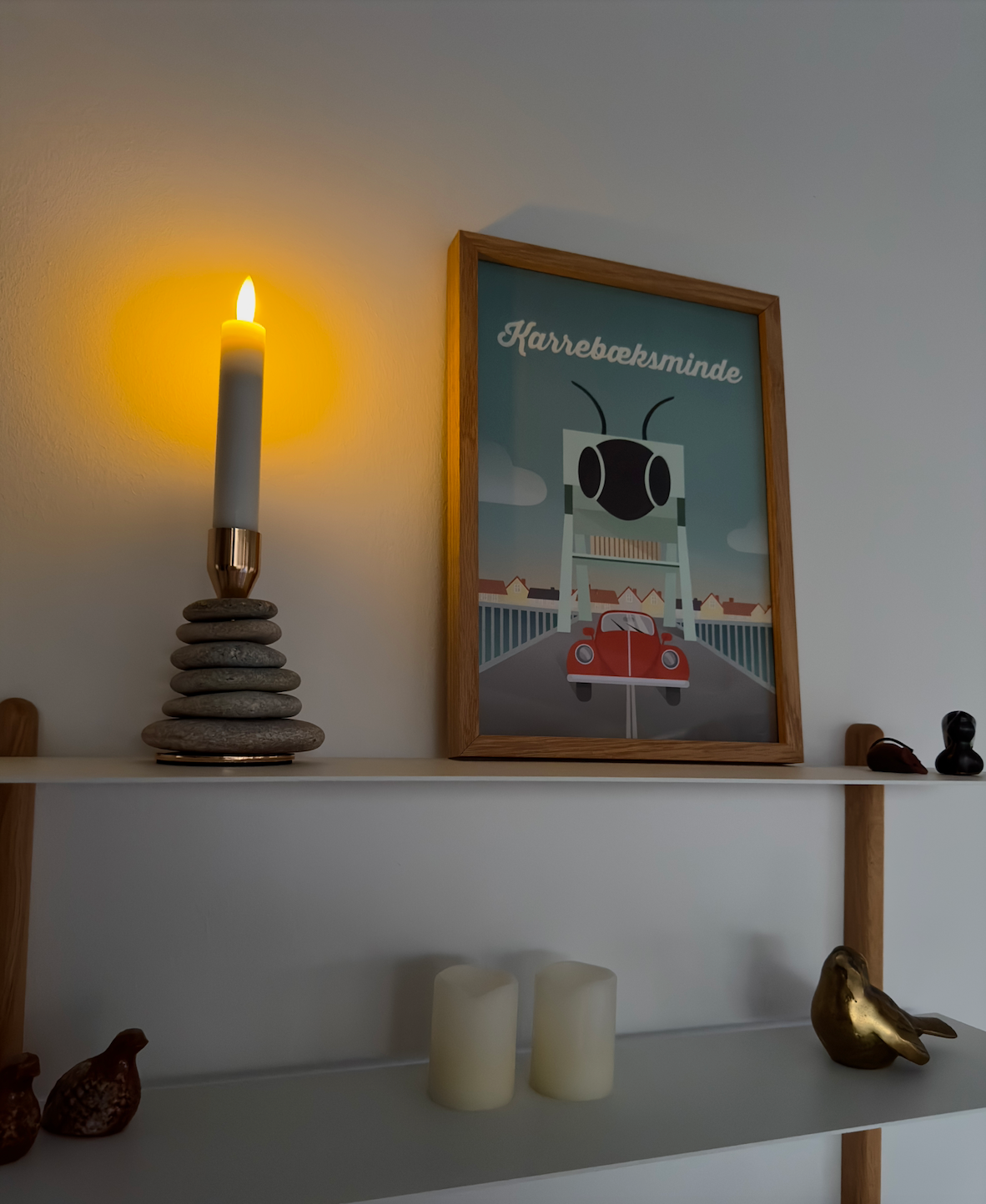 Stemningen i et rum med den smukkeste stenvarde, der balancerer perfekt, er præget af en følelse af ro og ærefrygt. Rummet fyldes med en næsten meditativ atmosfære, hvor tiden synes at stå stille, og man føler en dyb forbindelse til naturens æstetik og enkelhed. Varden, med sine nøje afbalancerede sten, bliver et centrum for stilhed og refleksion, og dens tilstedeværelse udstråler en fredfyldt energi. Der er en respektfuld stilhed i rummet, hvor samtaler dæmpes, og bevægelser bliver mere forsigtige, som om man ikke vil forstyrre den delikate balance. Besøgende bliver ofte stående lidt længere, fanget af vardens stille skønhed og den harmoniske stemning, som den skaber. Det er et rum, hvor man føler sig opmuntret til at tage en pause, trække vejret dybt og nyde øjeblikkets enkelhed og skønhed.
