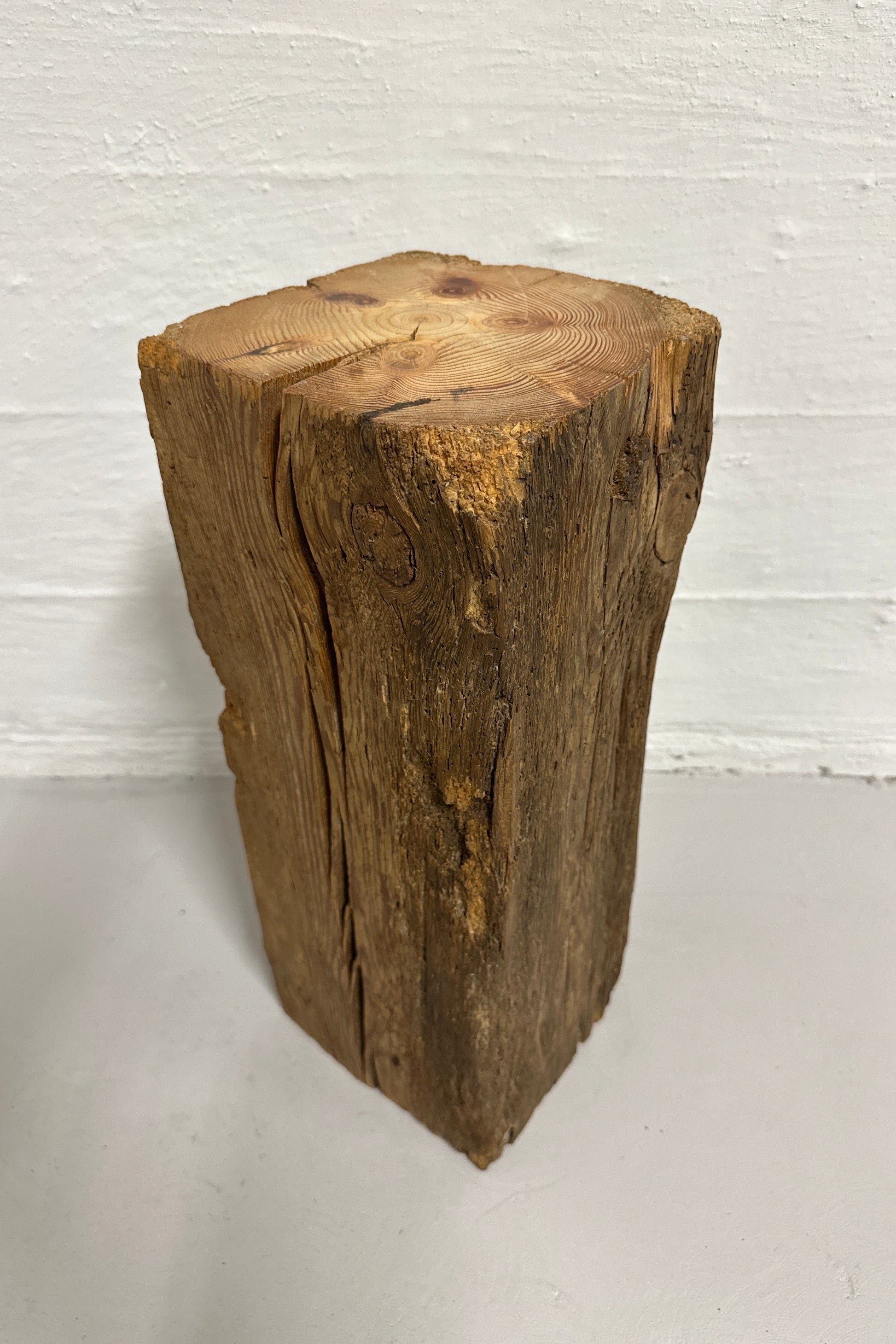 WoodPiedestal lille i fyrretræ. Piedestalen er lavet af gamle, historiske bjælker og spær fra historiske stalde som du kan læse mere om længere nede. Piedestalen har desuden fået en beskyttende behandling, for at beskytte træet på en naturlig måde, med respekt for dets alder og struktur, læs mere i beskrivelsen. Piedestalen måler cirka 51 cm i højden, 20 cm i bredden og 20 cm i dybden. Fyrretræet, der er brugt til piedestalen, har masser af patina i form af slid, huller, revner og andre charmerende detaljer.
