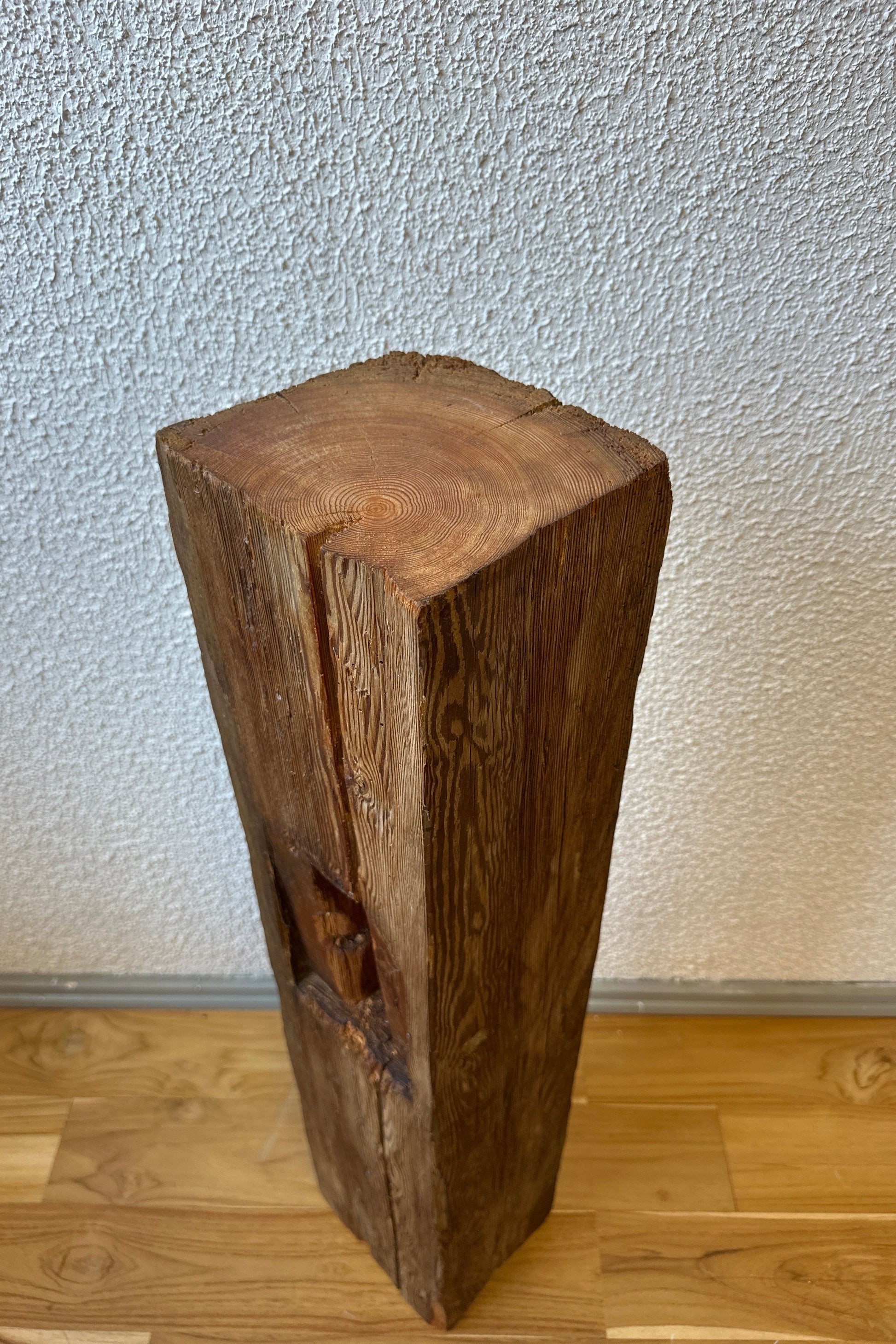 WoodPiedestal stor i fyrretræ. Piedestalen er lavet af gamle, historiske bjælker og spær fra historiske stalde som du kan læse mere om længere nede. Piedestalen har desuden fået en beskyttende behandling, for at beskytte træet på en naturlig måde, med respekt for dets alder og struktur, læs mere i beskrivelsen. Piedestalen måler cirka 91,5 cm i højden, 19 cm i bredden og 17,5 cm i dybden. Fyrretræet, der er brugt til piedestalen, har masser af patina i form af slid, huller, revner og andre charmerende detaljer.